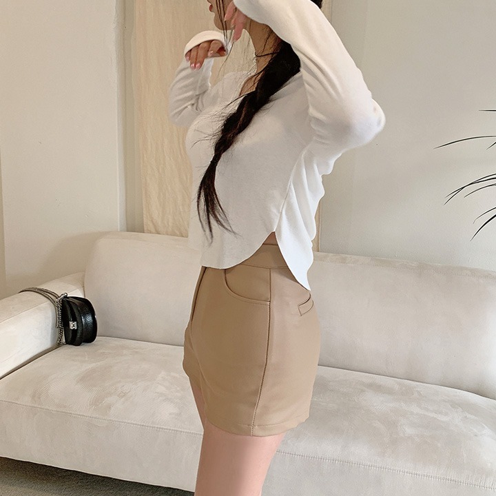 (기모) 플러 브이넥 굴림 라운딩 언발 여리핏 티셔츠 (아이보리,그레이,블랙)