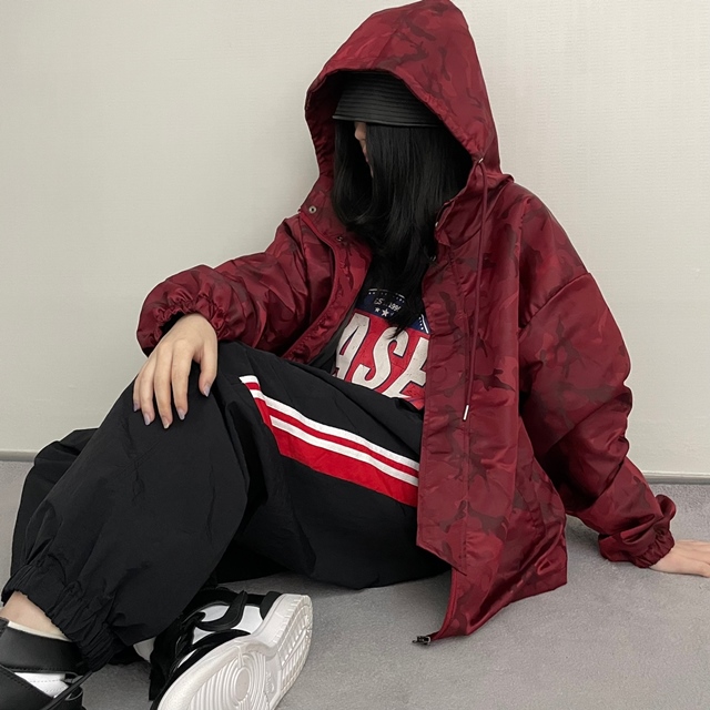 루즈핏 카모 유광 (K753) 바람막이 후드 집업 점퍼