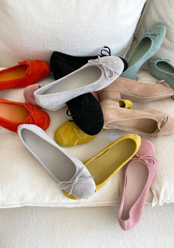 천연양가죽 스웨이드 리본 미들굽 펌프스 3cm 7컬러