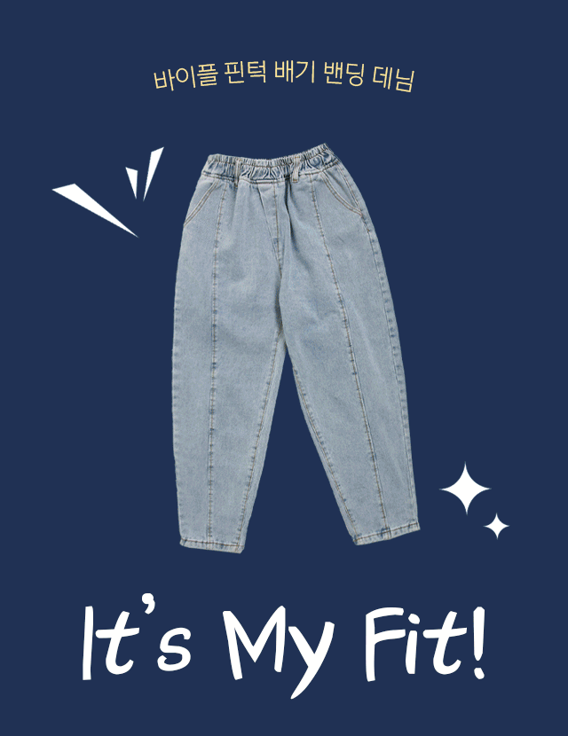 바이플 핀턱 배기 밴딩 데님