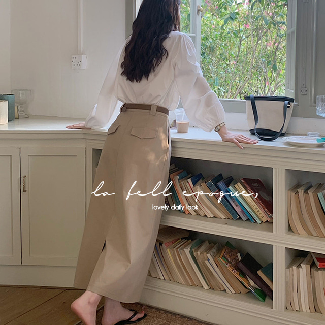 카운티 세미 A라인 핀턱 코튼 롱 스커트