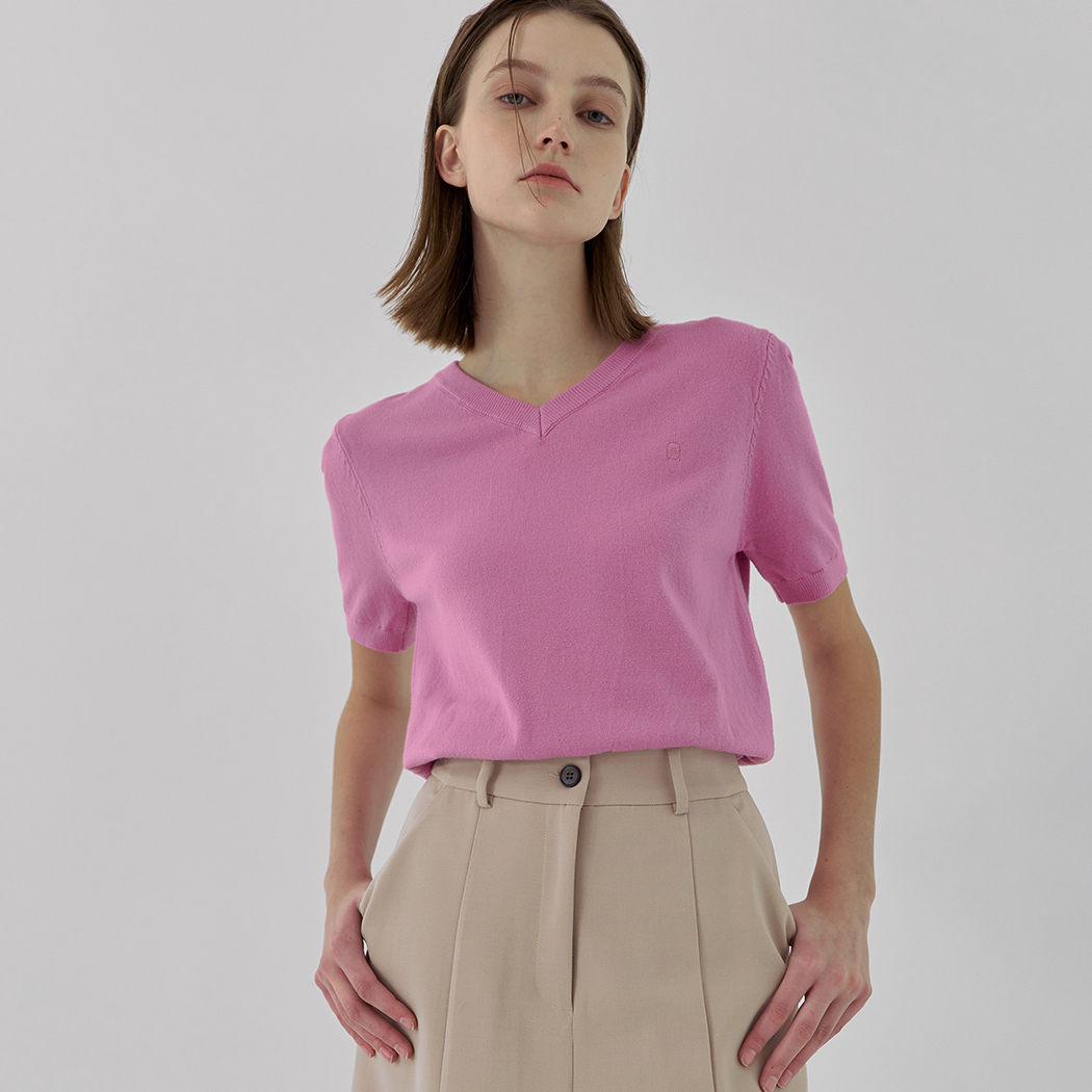 (T-6658)N시그니처 T030-베이직 브이넥 하프 자수 니트