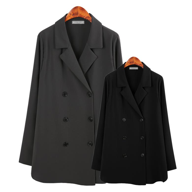 허밍퍼플 여성용 2376-라일라 블라우스 자켓 빅사이즈 심플 세련미 카라 더블 단추 간절기 봄 가을 시즈니룩 여성의류
