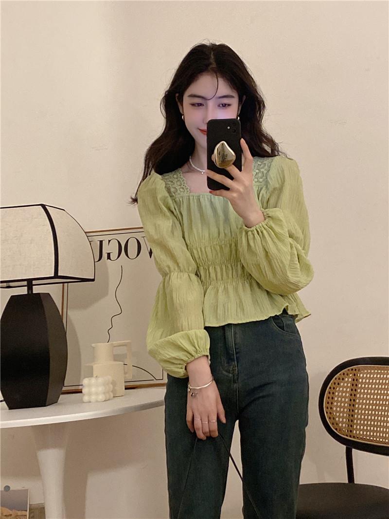 깔끔한 여자 블라우스 여성 오피스룩 셔츠 긴팔 가을 여름 봄 슬리밍 올매치 캐주얼 여성 상의 탑 사무실 출근룩 스퀘어넥 긴팔 커리어우먼