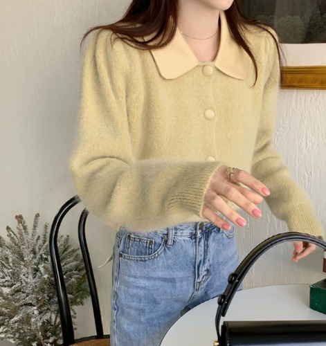 배색 카라 앙고라 가디건(3color)