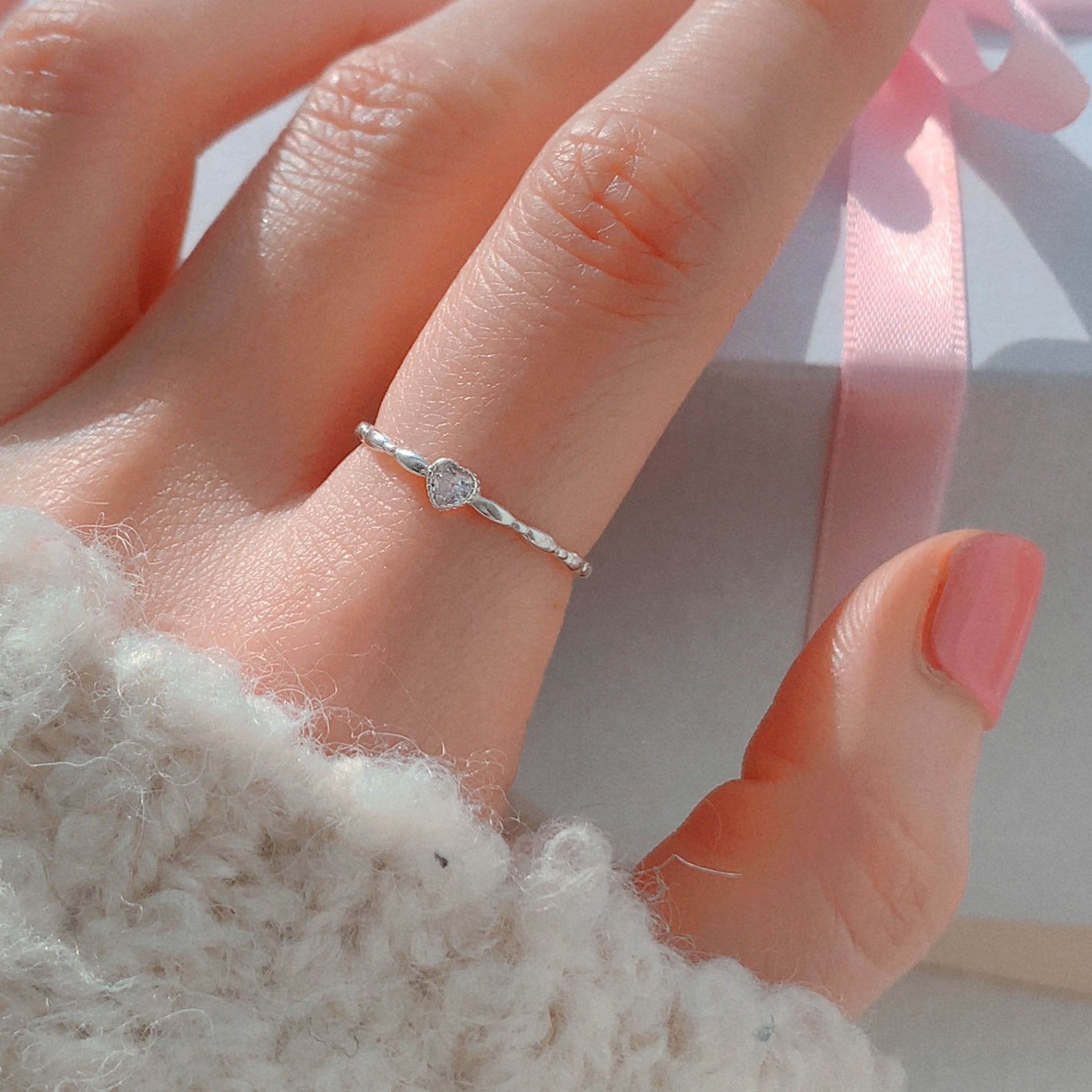 [Los.]미니 하트큐빅 실버925 은반지 petit heart ring