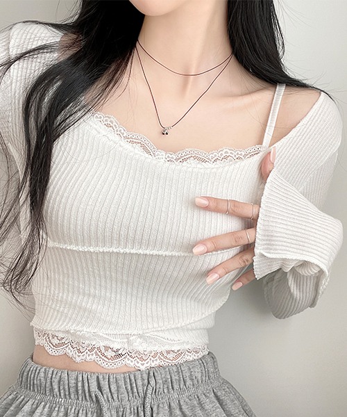 [오늘출발🚀묶음할인!Vintage lace] 레이스 골지 크롭 레이어드 이너 나시 끈나시 (2color)