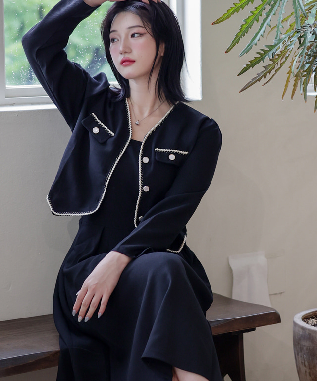 빅사이즈 3사이즈 프리패스 자켓 끈나시원피스셋트 ( 데일리 가을 하객룩,출근룩 빅사이즈 데이트룩 트위드)
