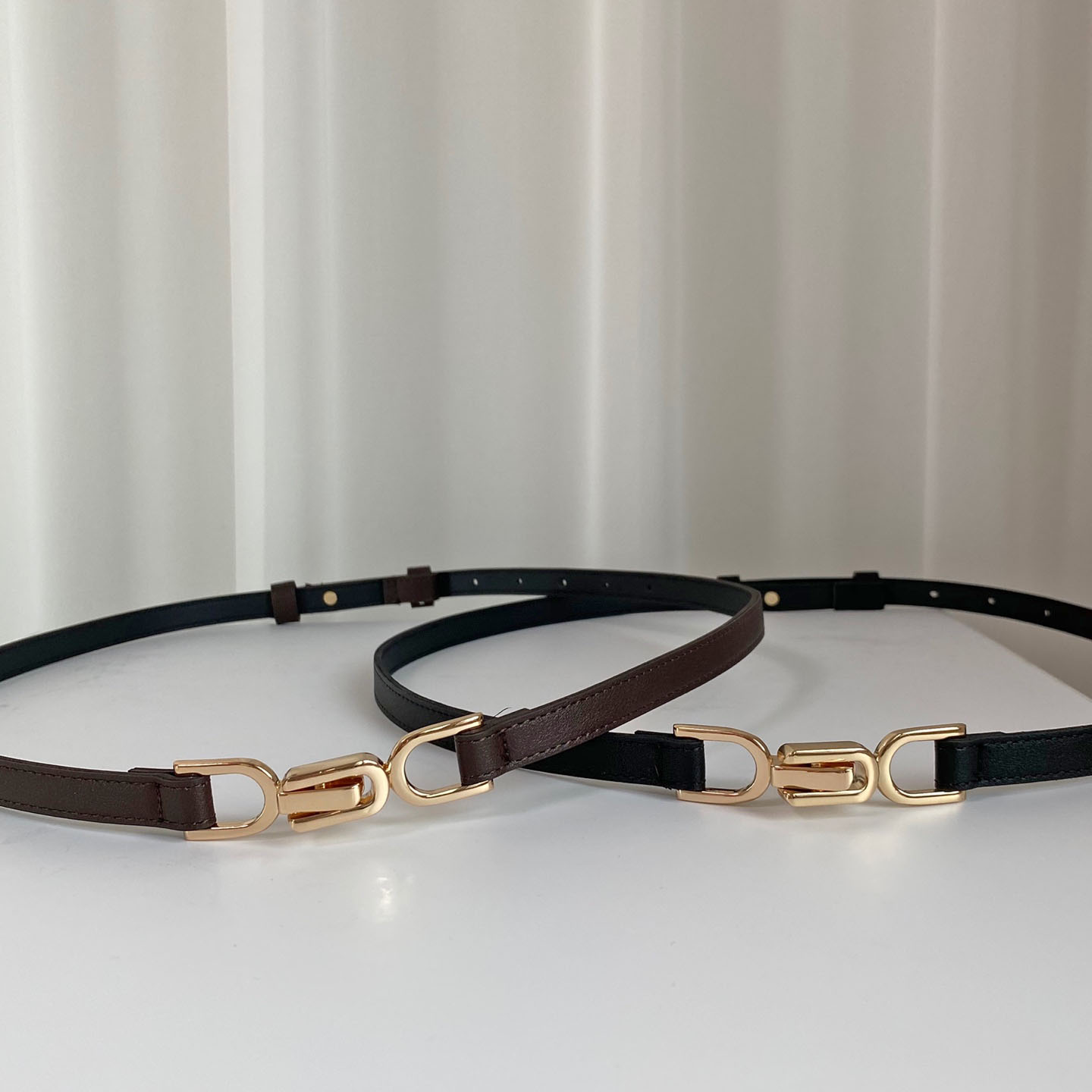[국내고퀄/당일출고] 후기100점! 올드머니룩 하객룩 클래식 고급 금장 골드버클 레더 가죽 슬림 자켓 원피스 심플 베이직 체인 레이어드 여자 벨트