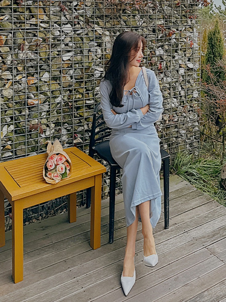 센로디 크롭 볼레로 나시 롱 원피스 투피스 세트
