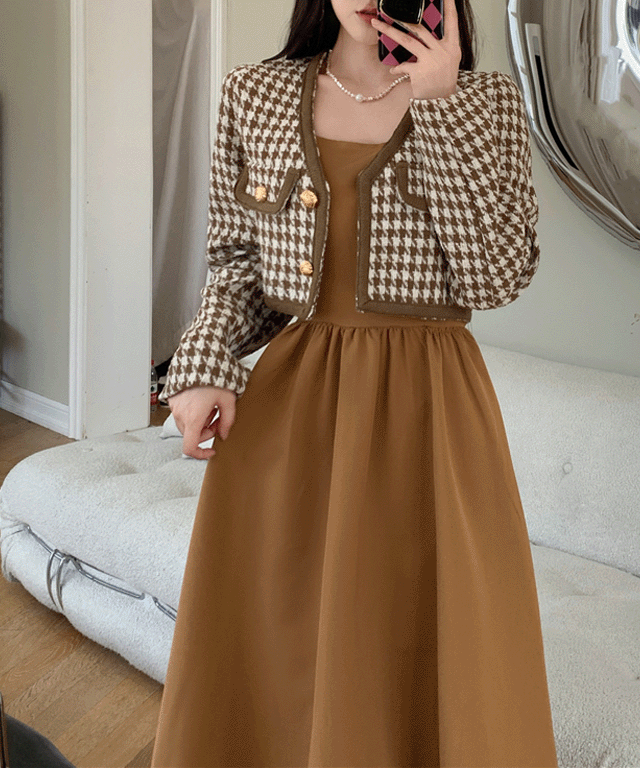 3사이즈 빅사이즈 발렌트위드자켓 끈나시원피스 투피스세트 (하객룩 상견례 결혼식 연말룩 데일리 출근룩 데이트룩 트위드 오피스룩)
