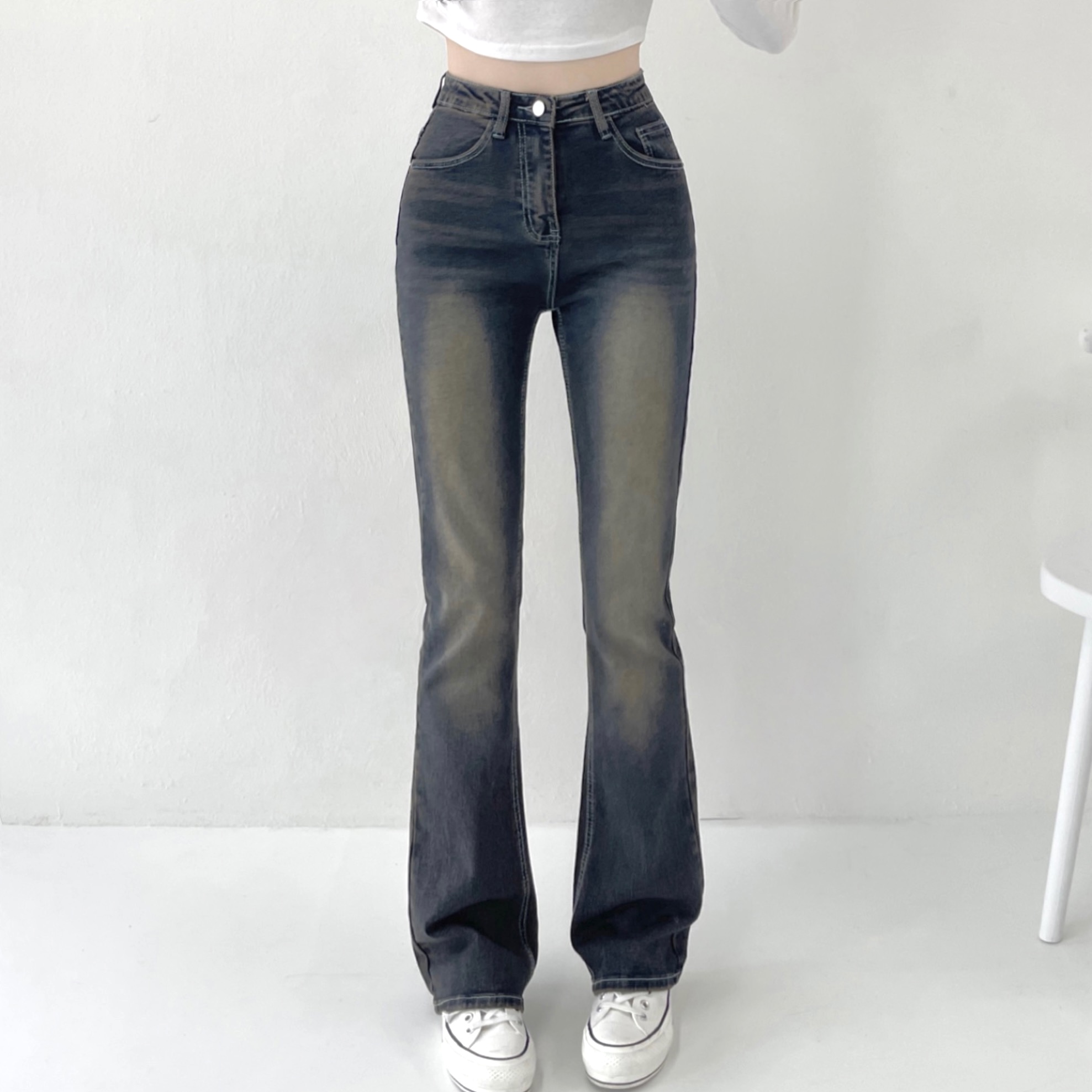[숏&롱/말라보이는!] 브라운 흑청 샌드 워싱 하이웨스트 부츠컷 데님 팬츠 키작녀 키큰녀 빅사이즈