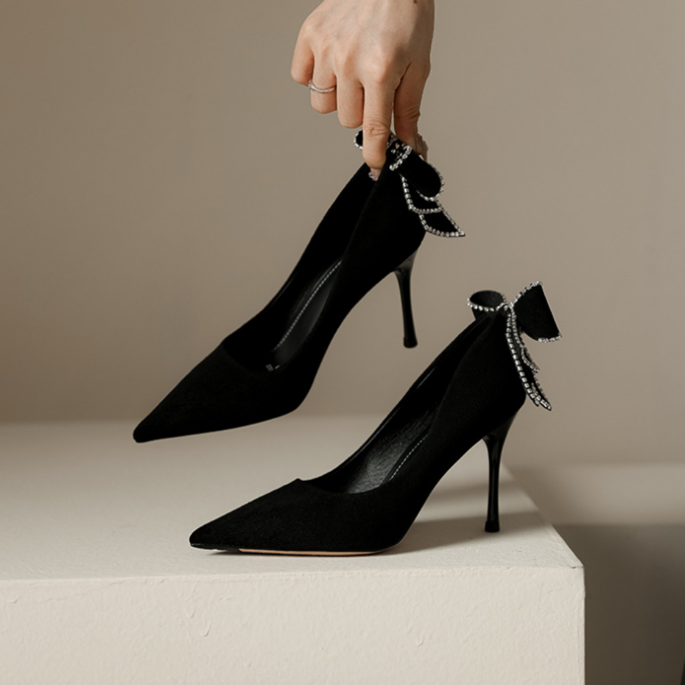 프소틴 5,7,9cm 리본 큐빅 스웨이드 스틸레토 하이힐 구두 1color
