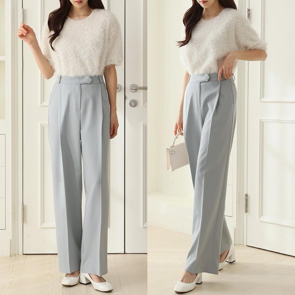 여성 정장바지 하이웨스트 스판 세미 와이드 밴딩 슬랙스 빅사이즈 여성 봄바지
