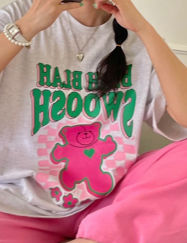 [BEST🥰/y2k🧸/체형커버💕] 블라블라 오버핏 곰돌이 반팔 티셔츠 (3color)