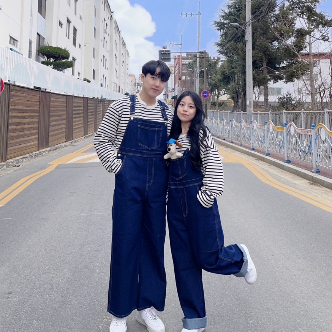 [일본여행강추💥] 남여공용 데님 청 오버핏 와이드 오버롤 멜빵바지 커플 시밀러룩 4color
