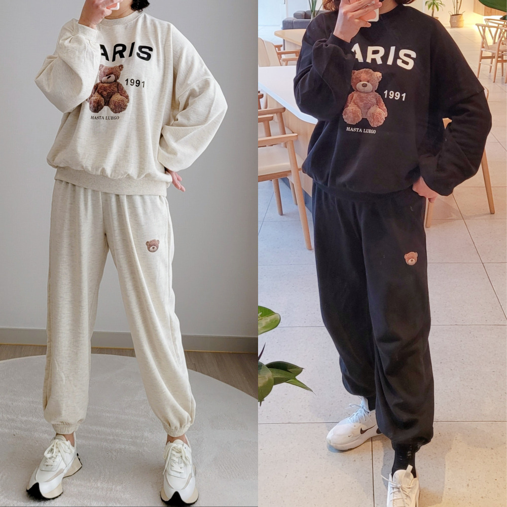 [44-88],[오트밀 당일배송💕] 베어 기모 예쁜트레이닝세트 빅사이즈트레이닝세트 기모조거팬츠세트 트레이닝복 츄리닝세트 77사이즈 기모운동복세트 88사이즈운동복 조거팬츠바지 츄리닝바지 운동복바지 트레이닝상의 셋업 트레이닝하의