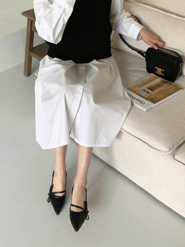 모니카 리본 꼬임 미들 쿠션 힐 버클 슬링백 펌프스 구두