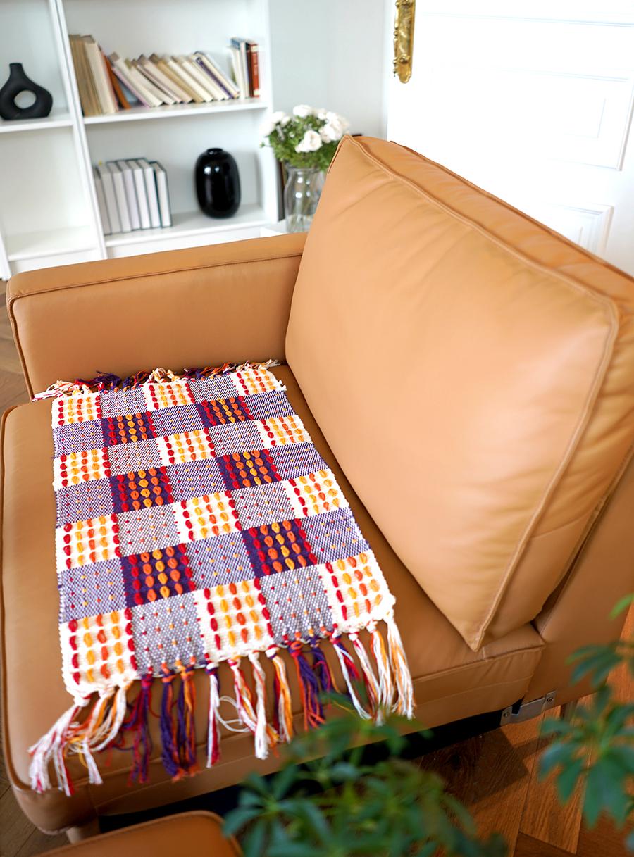 블랑쉬 퍼플 체크 코튼 수술 러그 45x70