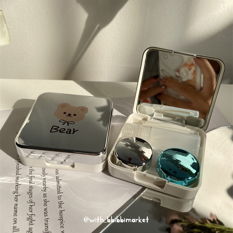 [당일출고] 렌즈케이스 올인원 렌즈통 렌즈 대리석거울 거울렌즈통 렌즈통세트 거울 테디베어 곰돌이 휴대용 파우치 세척통 보관 소프트 콘택트 하드렌즈 흡착봉