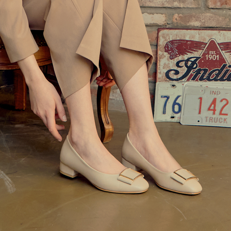 3cm 골드스퀘어 라운드토 통굽 로우힐 세이지 CW0012
