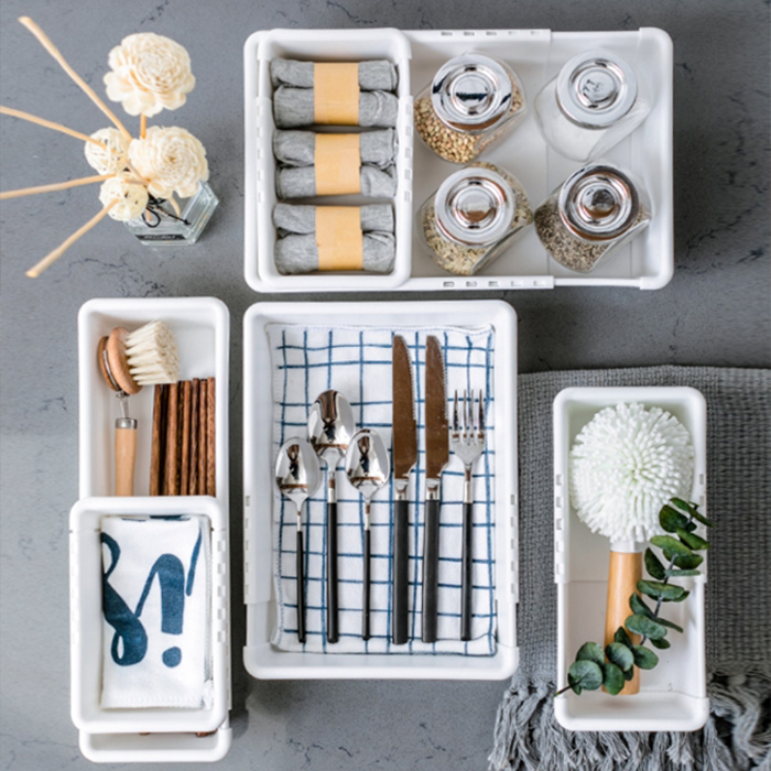 길이조절 서랍 정리 칸막이 트레이 4종 [주방 싱크대 책상 수납 서랍 칸칸 정리함 키친 씽크대 수납트레이]