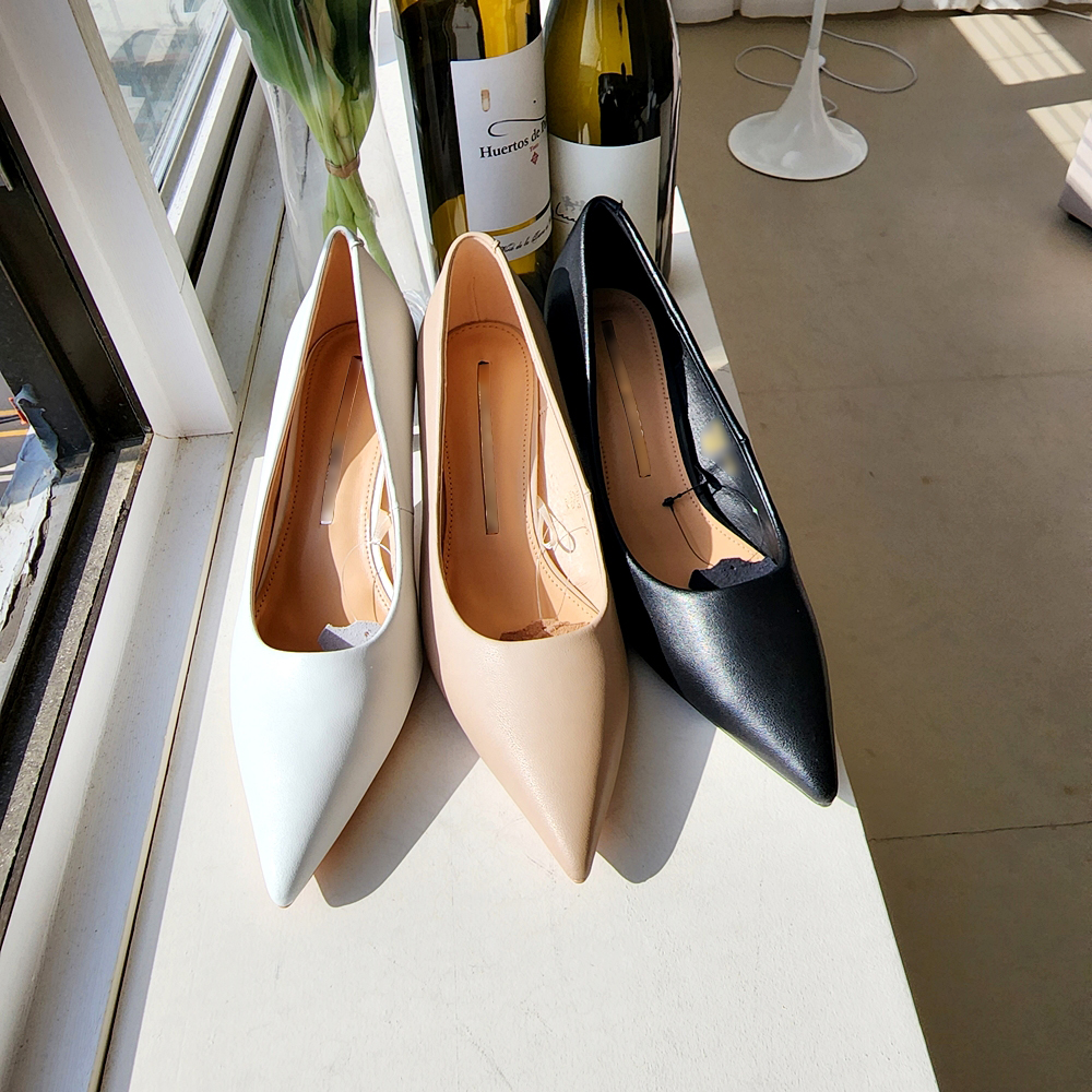 [키키슈즈] 소가죽구두 발볼넓은 여자 스틸레토 뾰족 구두 키튼힐 출근 하객 면접 화이트 베이지 블랙