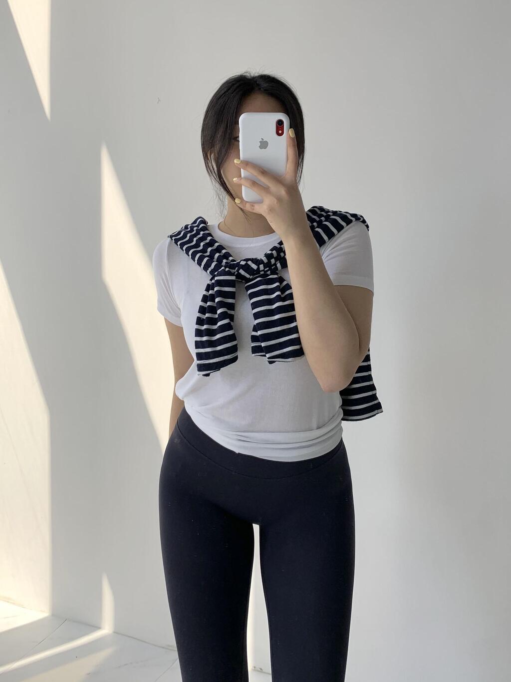 40[MADE당일출고]세미롱 반팔 티셔츠 트임 슬림핏 언발 사선 운동복 요가 필라테스 여름 반팔티