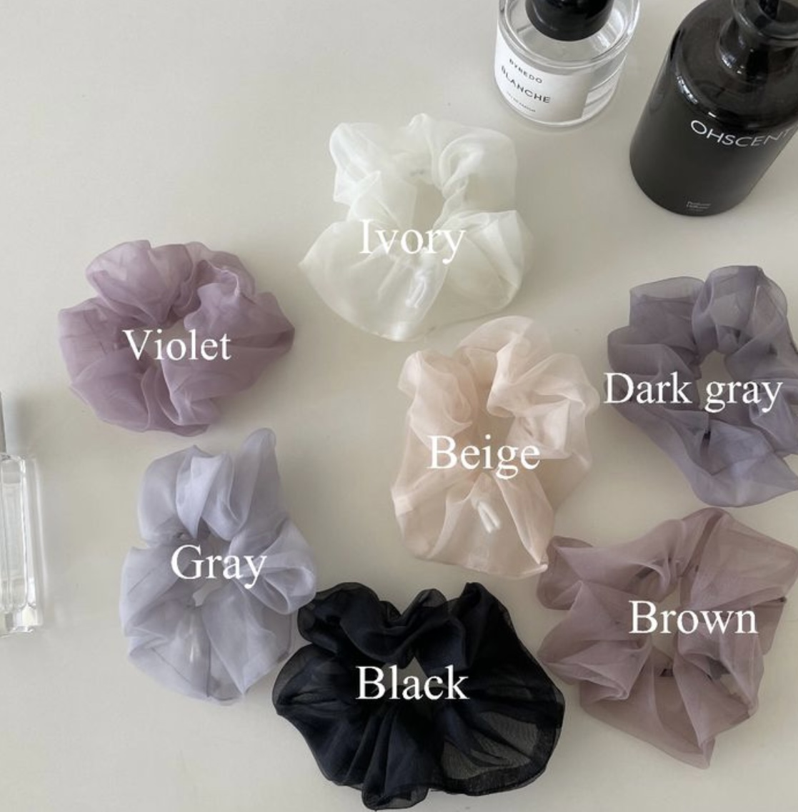 best♥ 당일발송 / 쉬폰 오간자 코튼 곰돌이 메쉬 무지 시스루 헤어 슈슈 곱창 스크런치 똥머리 포니테일 헤어밴드 머리끈 고무줄 (7 color)