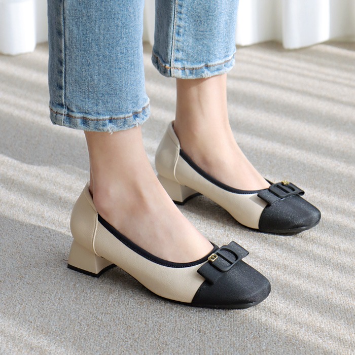 드렌스 배색 장식 탄력창 로우 펌프스(3cm)