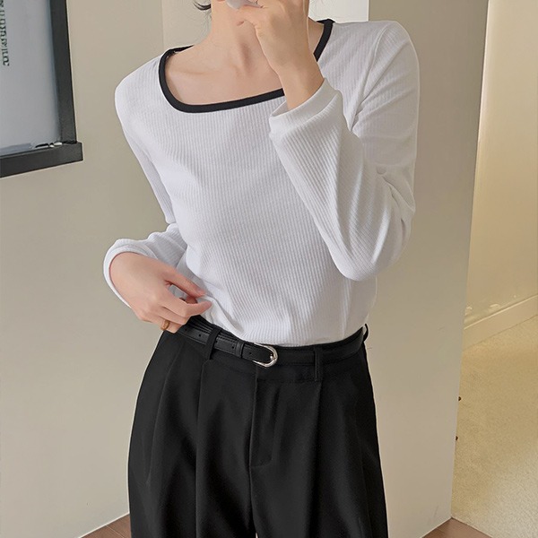 [컬러추가💙][보들쫀쫀/배색스퀘어넥][MADE] 스타트 스퀘어넥 배색 골지티셔츠(44~110) (빅사이즈티셔츠-슬립핏-베이직핏-체형커버-베이직티셔츠)
