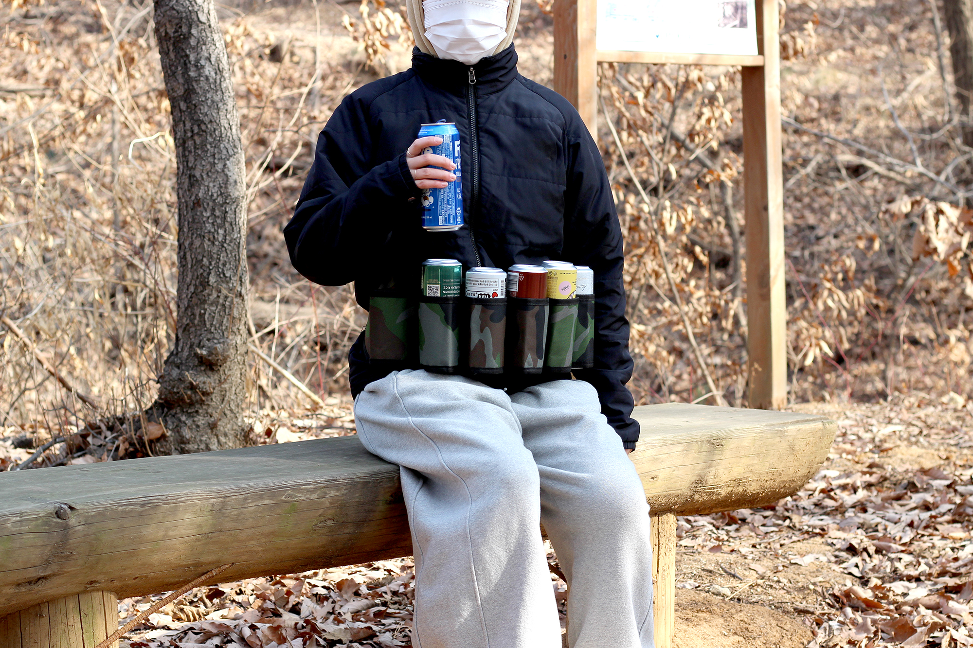 맥주 허리띠 등산 페스티벌 밀리터리 카모 힙색 용품 소풍 나들이 산악회 야유회 운동회 모임 캔 음료 인싸 아이템 허리에 차는 벨트 가방 [CISMAS]