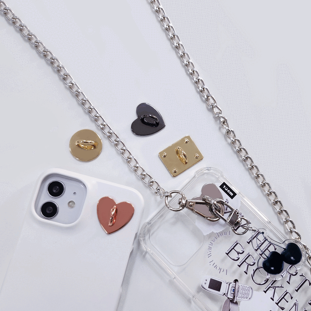 케이스 부착형 고리 . 폰꾸 DIY 키링 스트랩 비즈 폰줄 하트 데코 부착 열쇠 고리 파츠 부자재 아이폰 11 12 13 14 갤럭시 S21 22 23 플러스 노트 꾸미기 케이스