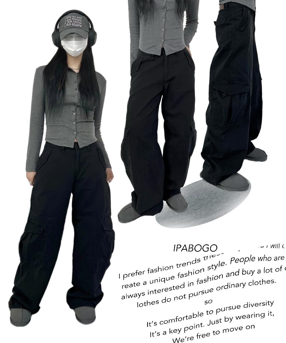 IPABOGO BEST1위 [힙니크/스트릿]아메카지 올블랙카고롱와이드데님