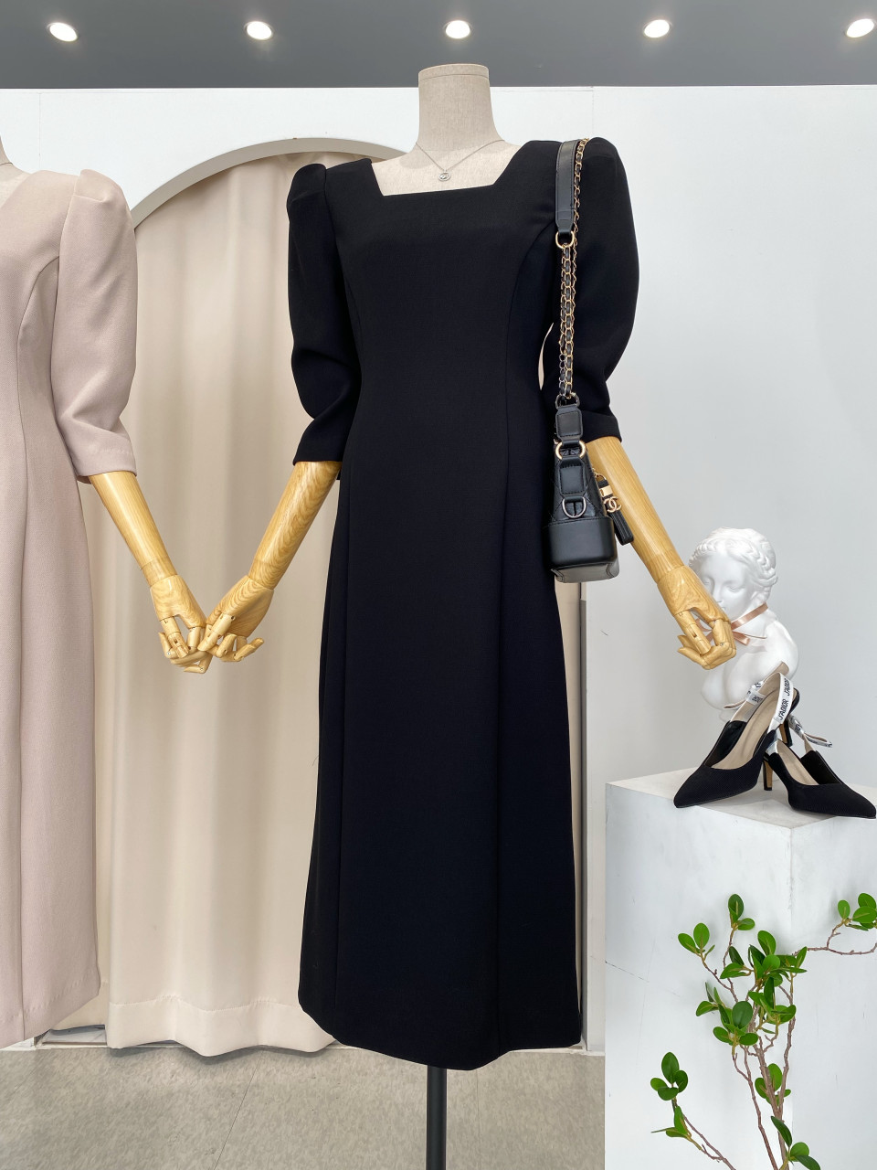 2color 메이 고급스러운 스퀘어넥 여성 봄 롱 하객원피스