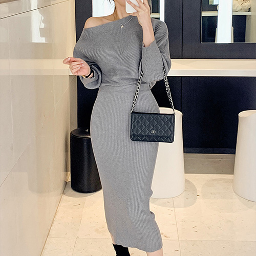 보트넥 니트 H라인 롱스커트 골지 투피스 세트