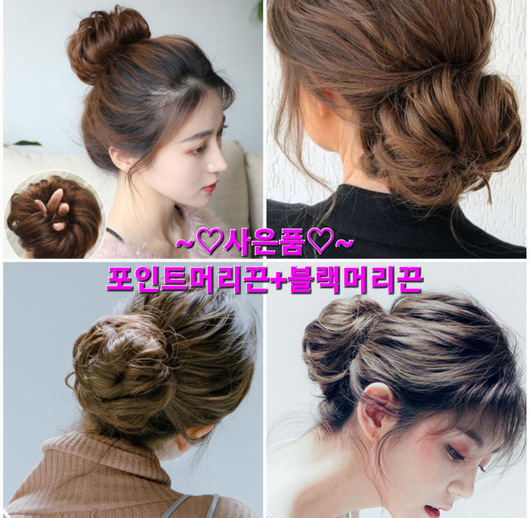[다이나몰/포인트머리끈+블랙머리끈 증정] 당고머리 똥머리 펌 가발 도넛 곱창밴드 머리끈
