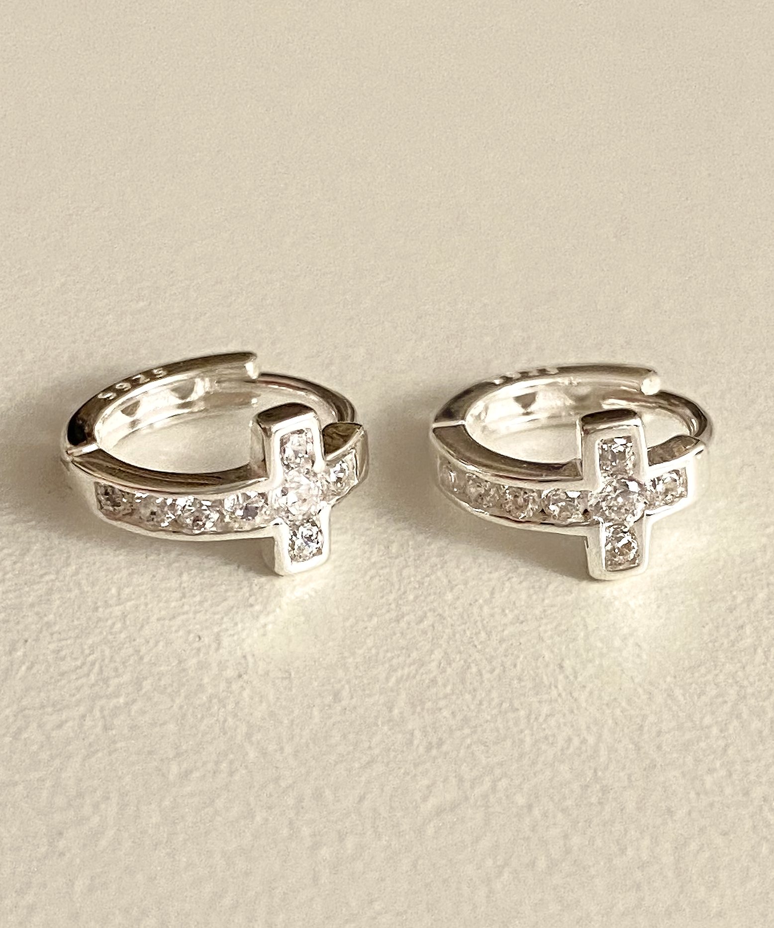 [무배] 실버925 미니 크로스 십자가 큐빅 원터치 링 귀걸이