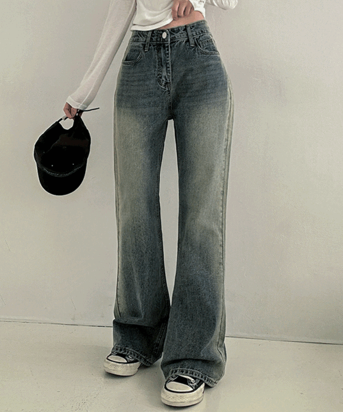 [숏/롱] 그린티 롱 부츠컷 와이드 데님 팬츠 1colors