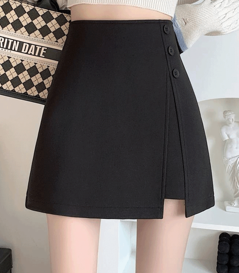 시즌오프!!클리어런스 오늘츨발 / 하이웨스트 옆 트임 숏 스커트/가을 겨울 봄 착용 가능한 기본 치마 A라인 슬림핏 트위드 미니스커트 여성 모직 짧은 치마 정장치마 캐주얼룩 데일리룩 블랙치마 봄미니스커트 옆절개 언발런스