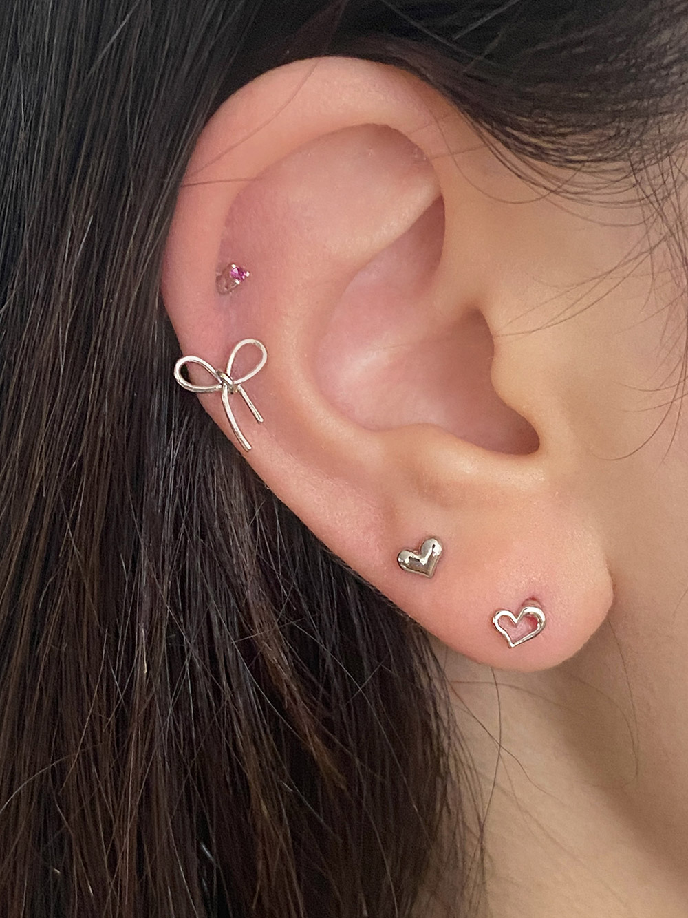 [4ps]레나 써지컬 리본 하트 포인트 써지컬 피어싱 세트 (one color)
