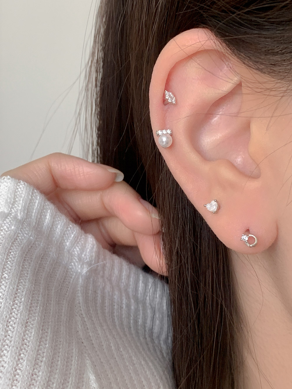 [4ps] 레이트 진주 데일리 큐빅 심플 써지컬 피어싱 세트 (2color)