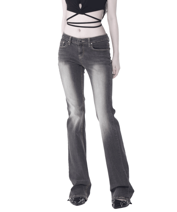 세미부츠컷 그레이진 흑청 로우라이즈 청바지