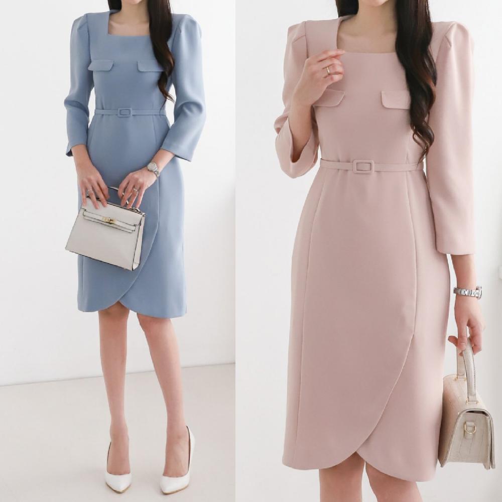 가을 겨울 정장원피스 상견례옷차림 스퀘어넥원피스 결혼식하객룩 가을 하객원피스 상견례원피스