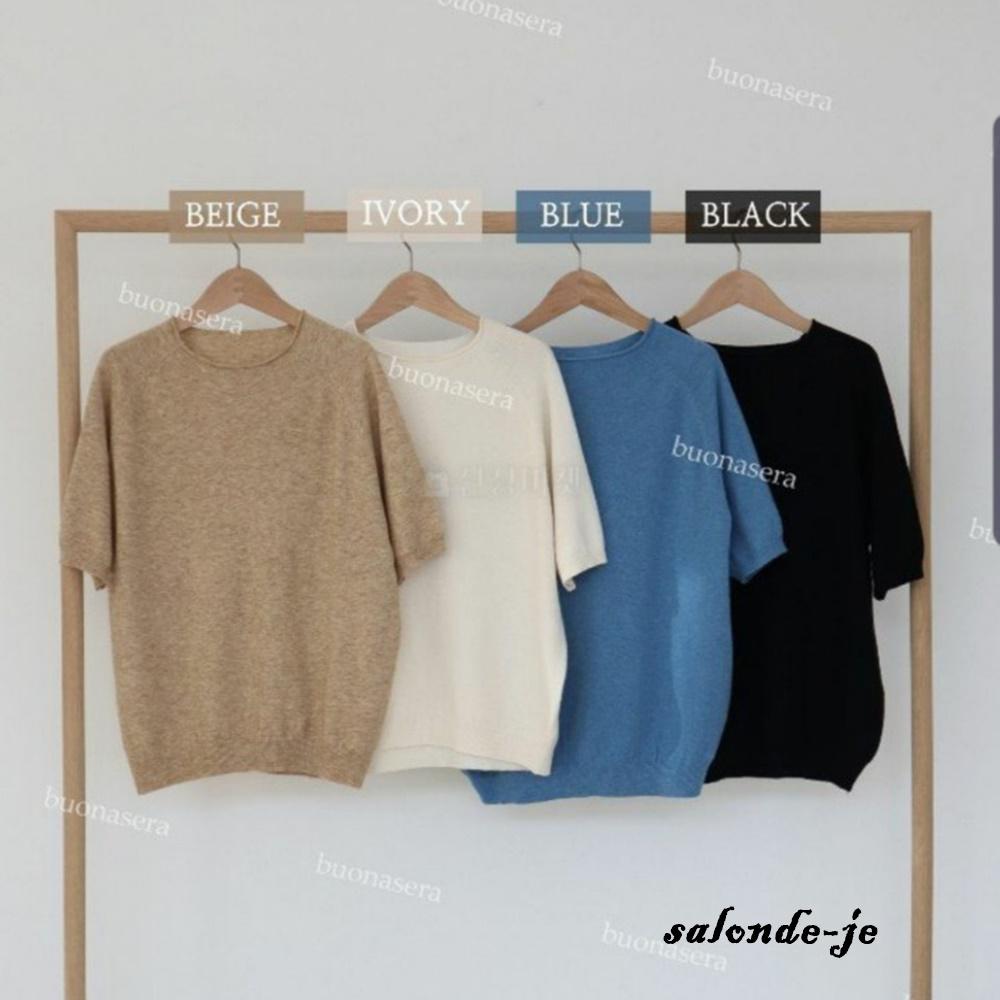 여성 봄 가을 루즈핏 라운드넥 돌돌이넥 반팔니트