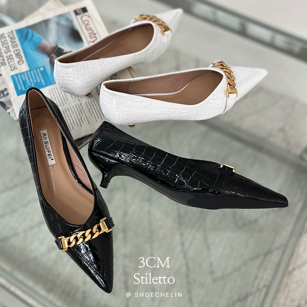 골드체인 스틸레토 로우힐 (3cm) 당일발송!