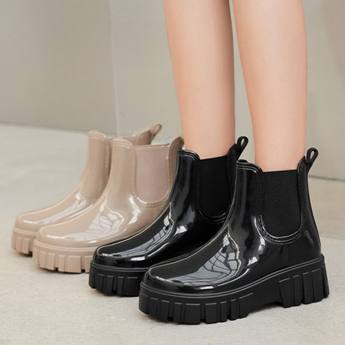 베리슈 여성 5cm 2가지 디자인 통굽 지퍼 첼시 패션 키높이 레인부츠 장화 발목 반장화 앵클 레인슈즈
