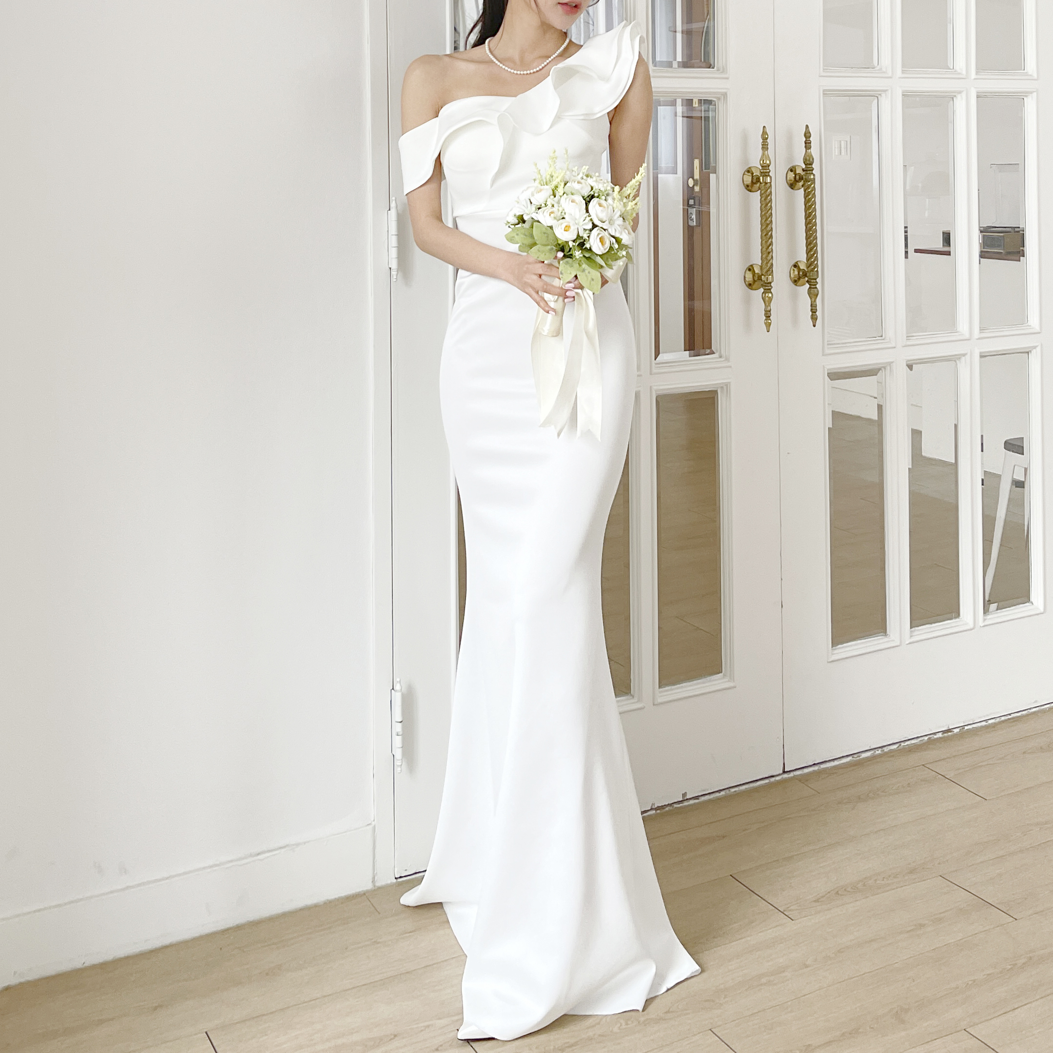 클라라 셀프웨딩 드레스 2color, 블랙 화이트 피로연 2부 돌잔치 브라이덜샤워 하프숄더 스냅 파티 연주회 머메이드 원피스