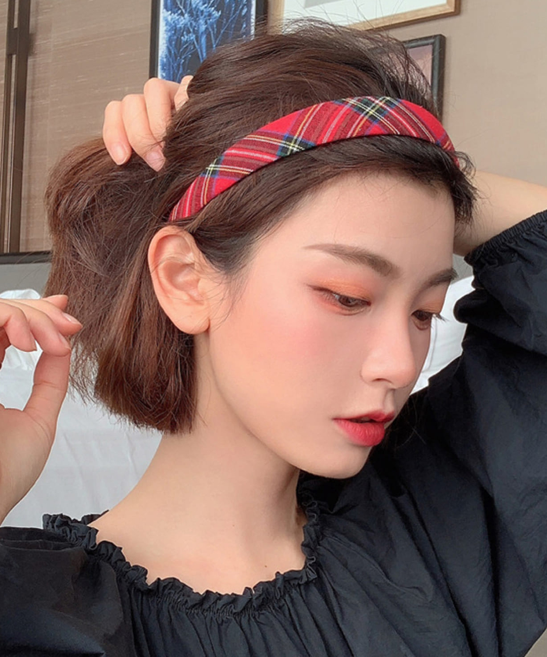 하이틴 체크머리띠 가성비 헤어밴드 4colors