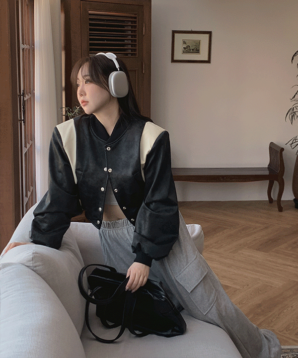 10309 [소장템] 레더 배색 크롭 바시티 숏자켓jp(2color)